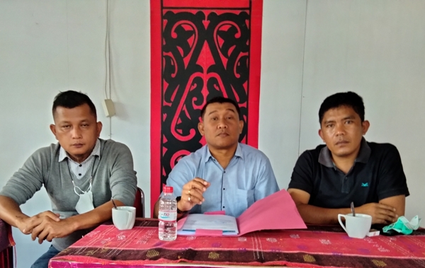 Ketua PWI Bonapasogit Alfonso Situmorang didampingi Sekretaris Candra Sirait dan Bendahara Darwin Junianto saat memberikan keterangan seputar hasil ujian seleksi anggota PWI Sumut. Palapa Pos/ Foto IST Alpon Situmorang