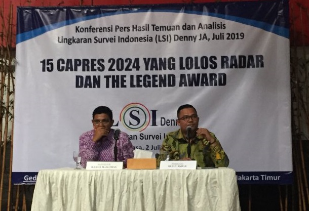 LSI melakukan konferensi Pers Hasil Temuan dan Analisis LSI Denny JA di Jakarta, Selasa (2/7/2019), terkait Capres potensial di Pilpres 2024. PALAPA POS/Istimewa.