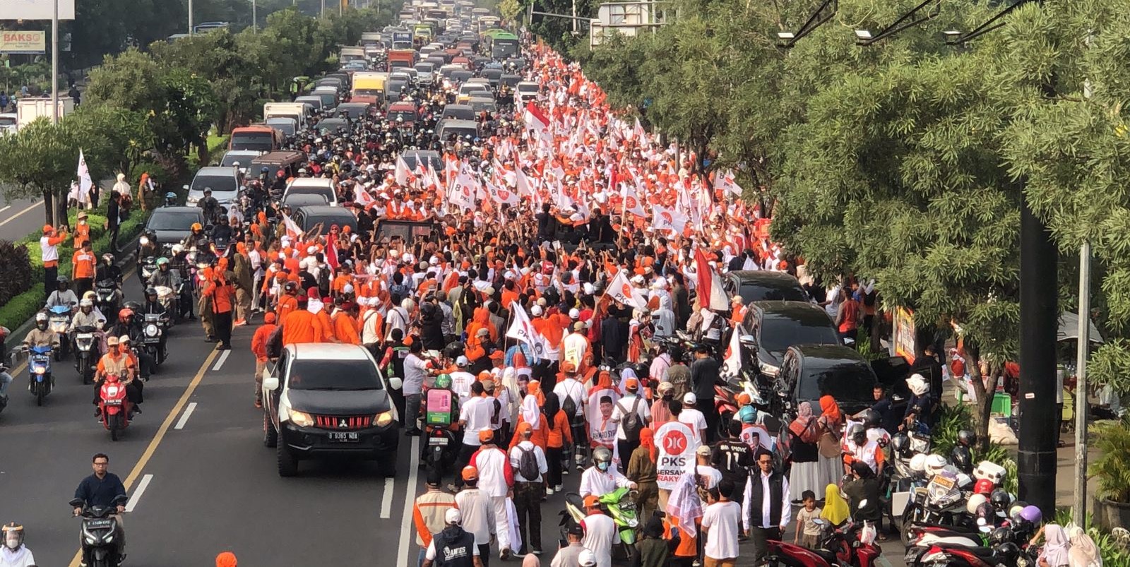 KOTA BEKASI - Meski gagal menggunakan fasilitas Stadion Patriot Candrabhaga Kota Bekasi untuk kegiatan senam masal yang di hadiri Bakal Calon Presiden, Anis Rasyid Baswedan, pria yang pernah pernah menjabat sebagai Gubernur DKI Jakarta periode 2017-2022 itu memberikan apresiasi kepada DPD PKS Kota Bekasi lantaran telah berhasil mengumpulkan, kader, dan simpatisan hingga menutup separuh Jl. Ahmad Yani arah Kranji dan menimbulakan kemacetan, Sabtu pagi (29/7/2023).