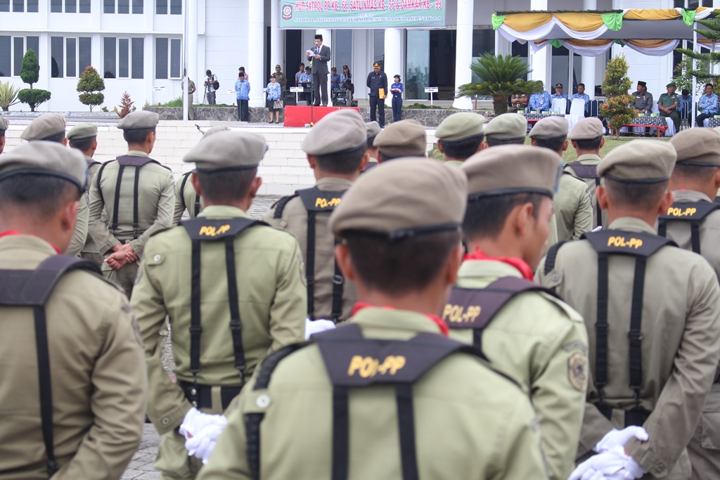 Satpol PP Humbahas saat mengikuti HUT Satpol PP ke 68 di Halaman Kantor Bupati Humbahas. PALAPAPOS/Ani Siregar
