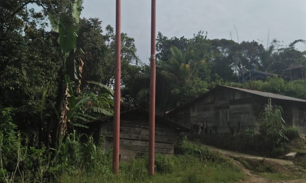 Pembangunan jaringan listrik di desa Pardomuan Nauli, Adian Koting sedang dilaksanakan pihak PLN. (PALAPA POS/ HENGKI TOBING)
