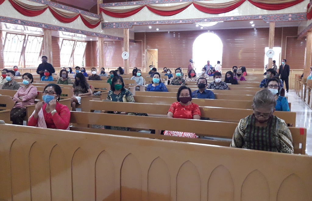 Dalam masa New Normal, penerapan protokol kesehatan dilakukan dimulai dari cuci tangan, pemeriksaan kondisi suhu tubuh, dan wajib pakai masker. Semua dilakukan kepada jemaat sebelum memasuki rumah ibadah, dan juga selama kebaktian jemaat wajib menggunakan masker.