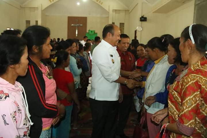 SIPAHUTAR - Saat menyerahkan bantuan sosial PKH (Program Keluarga Harapan) yang merupakan program pusat dibawah kepemimpinan Presiden Joko Widodo di Gereja HKBP Lumbanjulu, Kecamatan Sipahutar, Rabu (13/3/2019), Bupati Taput Nikson Nababan berharap penerima PKH dari tahun ke tahun semakin berkurang.