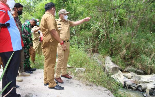 Bupati Taput Nikson Nababan didampingi OPD serta pelaksana proyek Joko Simanjuntak survey pembangunan jaringan air baku mengatasi krisis air minum tiga Kecamatan di Tapanuli Utara, Selasa (24/8/2021). PALAPA POS/ Alpon Situmorang