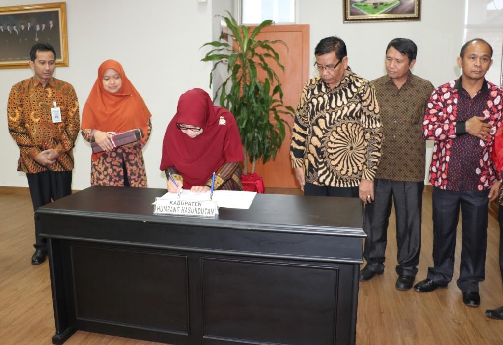 Perwakilan BPK Sumut tengah menandatangani berita acara penerimaan LKPD Humbahas TA 2018. PALAPAPOS/Andi Siregar