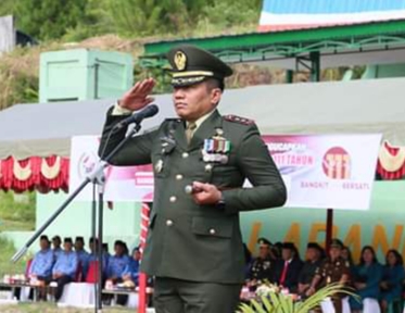 Dandim 0210/TU Letkol Rico Siagian yang bertindak sebagai Inspektur Upacara membacakan sambutan Menteri Komunikasi dan Informatika Rudiantara.