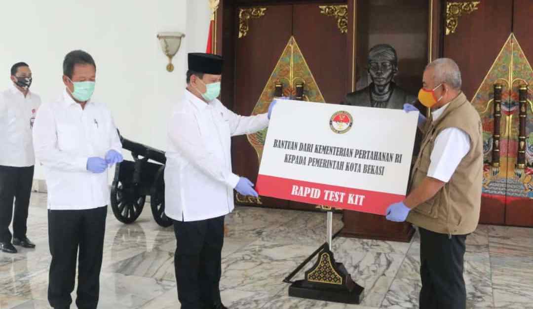 Bantuan Rapid Test Kit sebanyak 5.000 buah tersebut diserahkan secara simbolis Menteri Pertahanan Prabowo Subianto kepada Wali Kota Bekasi, Rahmat Effendi di kantor Kemenhan, Jakarta, Selasa (28/4/2020).
