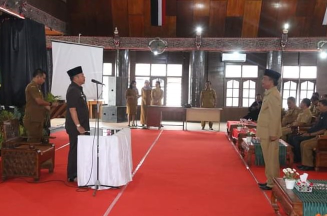 Bupati Taput Nikson Nababan saat melantik Parsaoran Hutagalung sebagai penjabat Sekda Taput. PALAPA POS/Hengki Tobing