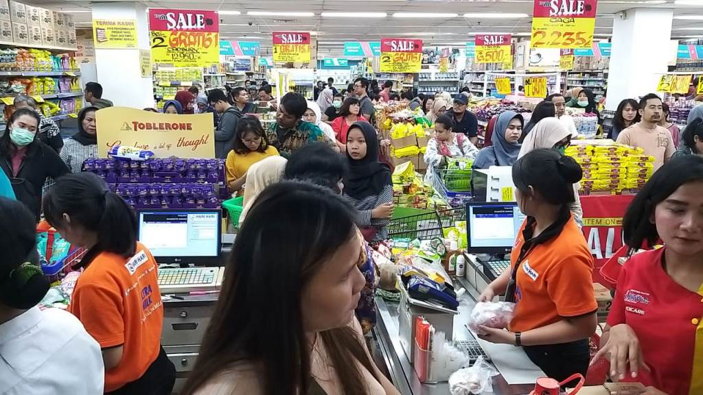 Salah satu swalayan di wilayah Bekasi Timur, Minggu (1/3/2020) malam, terlihat masih menggunakan kantong plastik yang diduga tidak ramah lingkungan. PALAPAPOS/Nuralam