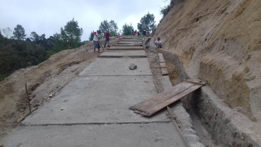 Jalan yang dulunya setapak melalui Dana Desa dioptimalkan baik pembukaan, pembangunan saluran air maupun drainase, rabat beton maupun tembok penahan tanah.