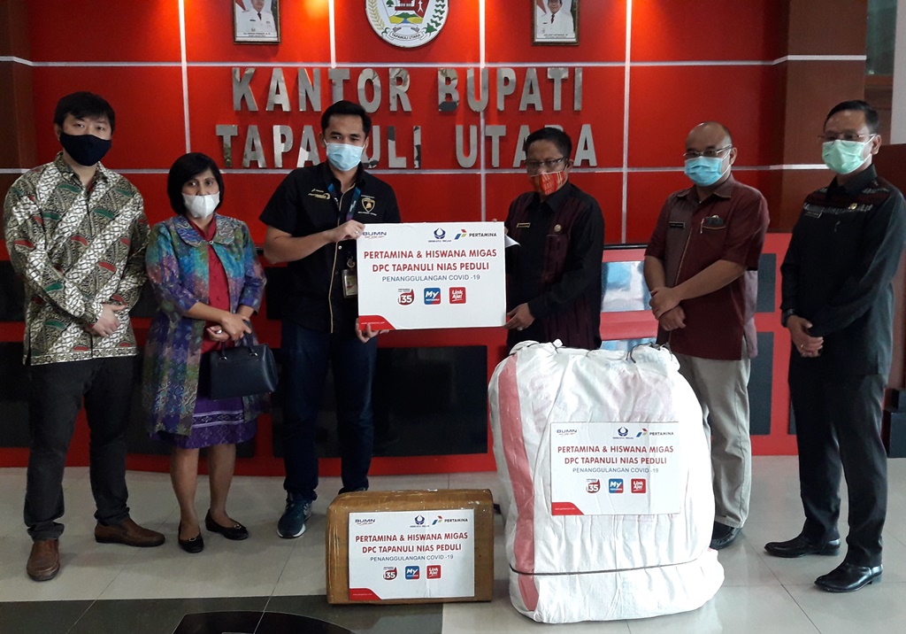 Pertamina Koordinir Pemilik SPBU Tapanuli Nias Serahkan Bantuan APD ke Taput