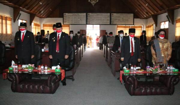 Forkopimda dan Legislatif Taput saat menghadiri rapat paripurna mendengarkan pidato kenegaraan Presiden RI Joko Widodo, Senin (16/8/2021). PALAPA POS/ Alpon Situmorang