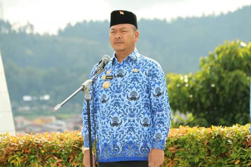 TAPUT - Bupati Tapanuli Utara Nikson Nababan bertindak sebagai Inspektur Upacara Peringatan Hari Otonomi Daerah (OTDA) Ke-XXIII Tahun 2019, yang dihadiri jajaran Aparatur Sipil Negeri (ASN) di lingkungan Pemerintah Kabupaten Tapanuli Utara (Pemkab Taput) yang dilaksanakan di halaman Kantor Bupati Taput, Tarutung, Jumat (26/4/2019).