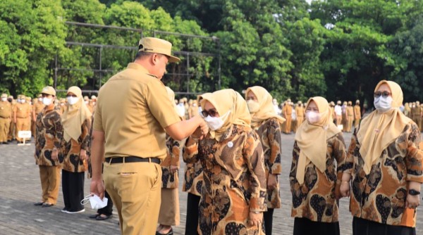 Pelaksana Tugas (Plt) Wali Kota Bekasi, Tri Adhianto Tiahyono saat melantik Ketua Pusat Pembelajaran Keluarga (Puspaga), Wiwiek Hargono, Senin (5/9/22022). PALAPA POS/ Yudha