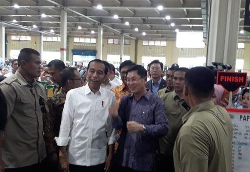 Presiden Jokowi meninjau pabrik sepatu di PT KMK Global Sports I, Keluraham Talagasari, Kecamatan Cikupa, Tangerang, Banten, Selasa (30/4/2019). PALAPA POS/Istimewa