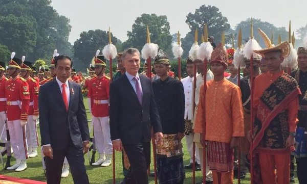 Presiden Joko Widodo saat menerima kedatangan Presiden Argentina Mauricio Macri. PALAPA POS/Istimewa