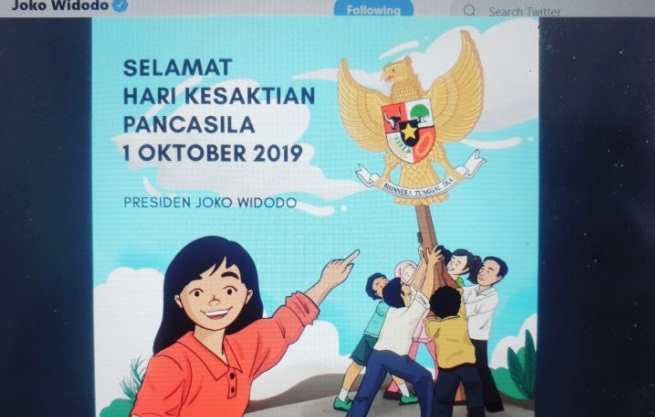 "Sebagai dasar negara, Pancasila telah memandu bangsa Indonesia untuk bersatu dalam keberagaman," demikian Presiden Jokowi dalam cuitannya di media sosial twitter @jokowi pada Selasa (1/10/2019) terkait peringatan Hari Kesaktian Pancasila.