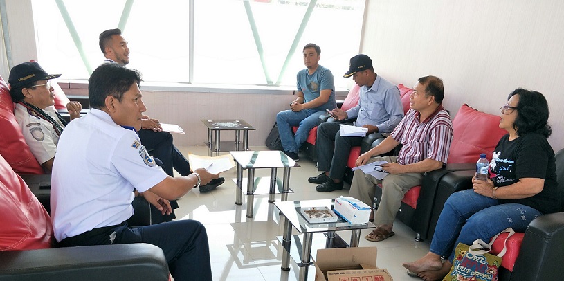 Pertemuan Ramsion Barutu pemilik lahan dengan Kepala Bandara Sibisa Farel Tobing, Kadishub Tobasa Pargaulan Sianipar dan KaAdpel Bandara Sibisa Jansen Saragih di kantor Bandara Sibisa, Kecamatan Ajibata, Tobasa. PALAPA POS/Jes Sihotang