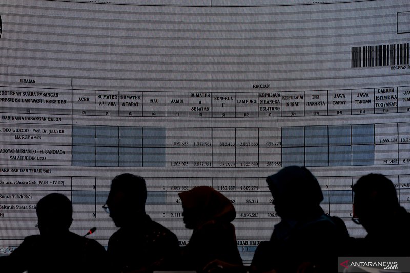Dari 28 provinsi itu pasangan calon presiden-wakil presiden petahana, Jokowi-KH Ma'ruf Amin, unggul di 17 provinsi, sedangkan pasangan calon presiden-wakil presiden nomor urut 02, Prabowo Subianto-Sandiaga Uno, unggul di 11 provinsi.