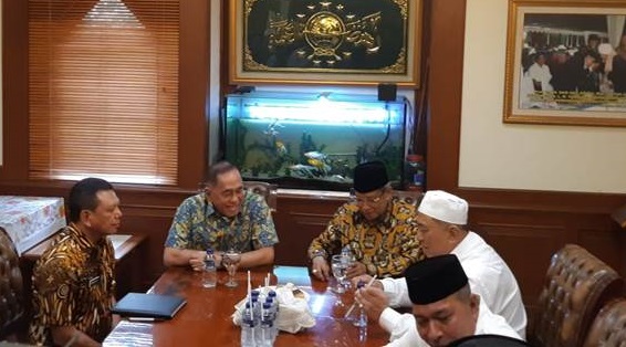 Menhan Ryamizard Ryacudu saat bertemu dengan Ketua Umum PBNU Said Aqil Siradj, di Kantor PBNU. PALAPA POS/Istimewa