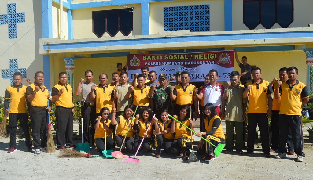 DOLOK SANGGUL - Polres Humbang Hasundutan (Humbahas) melakukan aksi bakti sosial dan bakti religi. Kegiatan tersebut guna menyambut hari Bhayangkara ke-73, pada 1 Juli mendatang.