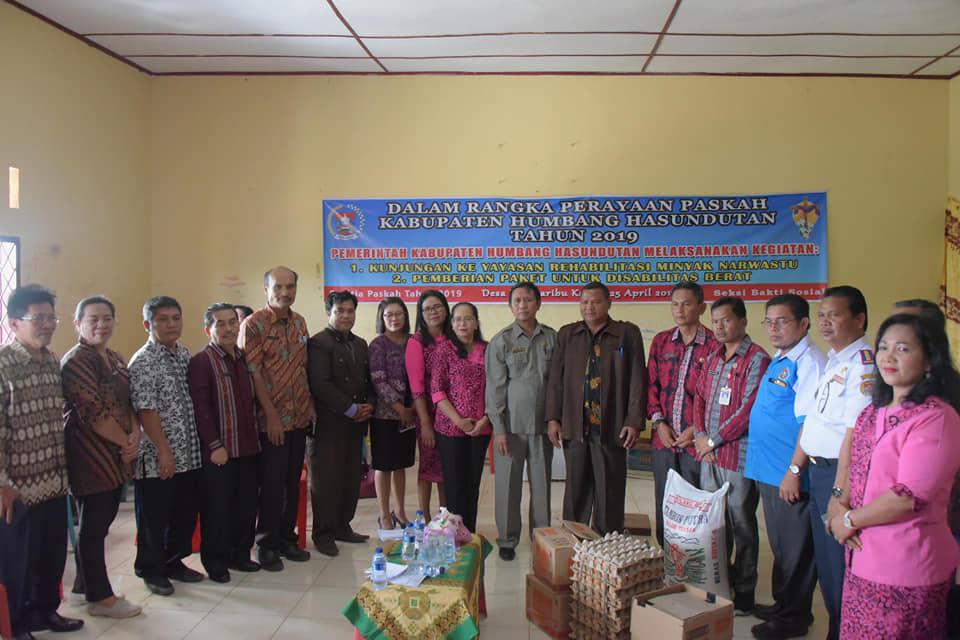 Sambut perayaan Paskah Kabupaten Humbahas, panitia menyampaikan bhakti sosial di Yayasan Rehabilitasi Minyak Narwastu. PALAPAPOS/Andi Siregar