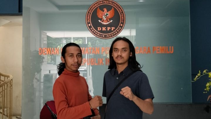 Ketua PMII Cabang Kota Bekasi, Yusril saat melakukan pelaporan ke Dewan Kehormatan Penyelenggara Pemilu (DKPP). PALAPA POS/ Yudha