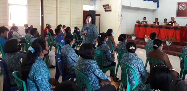 Ketua TP PKK Satika Simamora saat kampanye deteksi kanker serviks melalui IVA Test. PALAPA POS/Alponso Situmorang