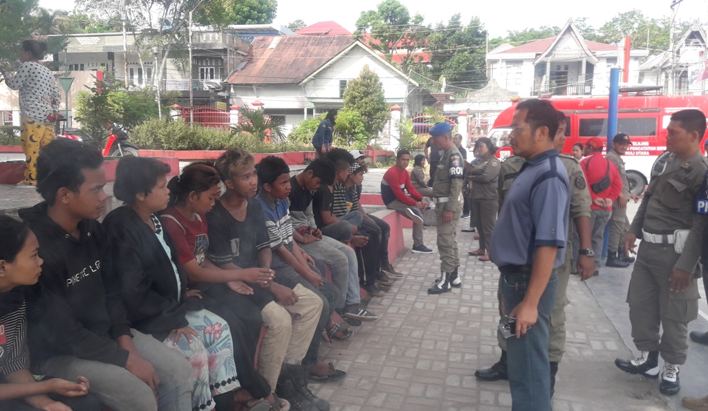 Pantauan palapapos.co.id, puluhan Gepeng yang rata-rata dibawah umur didata, kemudian diberikan pembinaan. (als)
