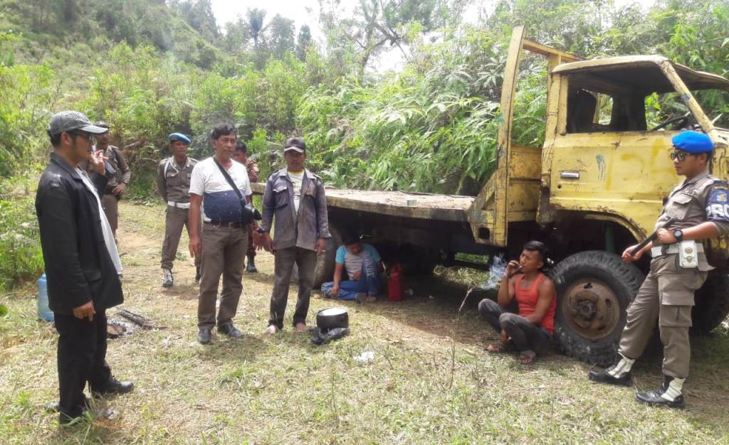TAPANULI UTARA - Atas desakan warga dan laporan mengenai aktivitas pengangkutan truk kayu lintas Desa Sibaragas Pagaran, bakal merusak jalan yang sedang dibangun, membuat Satuan Polisi Pamong Praja turun ke lokasi dan menghentikan aktivitas penebangan kayu pinus di Dolok Imun, Sabtu (16/11/ 2019).