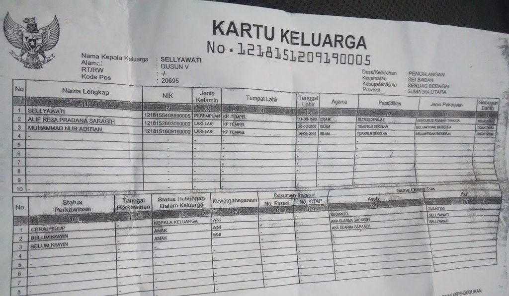 KK dan Akta Cerai yang diduga palsu Milik Selliyawati binti Sugianto