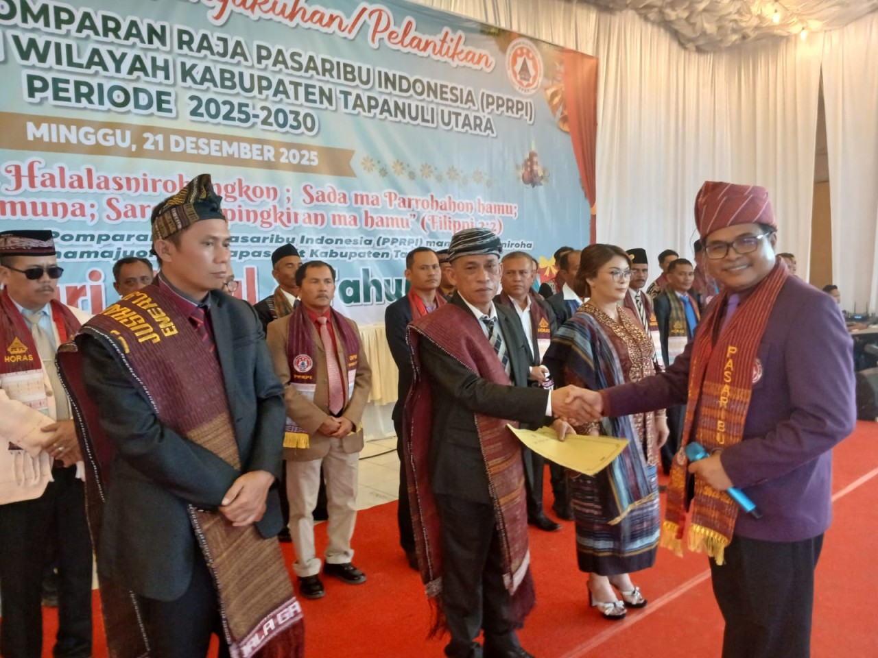 SEY Pasaribu dipercaya memimpin PPRPI Taput selama lima tahun ke depan. Prosesi pelantikan yang dirangkaikan dengan perayaan Natal ini berlangsung di Gedung Serbaguna Tarutung, Minggu, (21/12/2025).