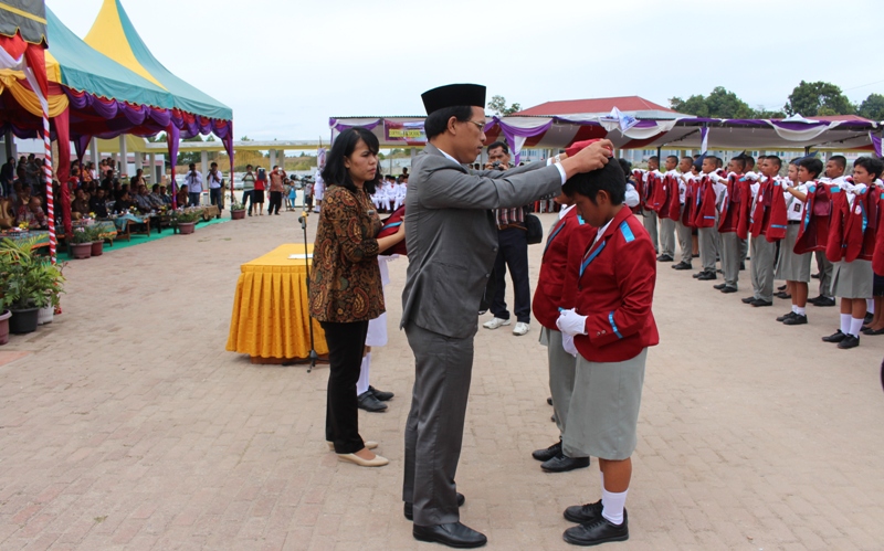 Bupati Humbahas Dosmar Banjarnahor mengukuhkan siswa SMAN 2 Lintong Nihuta angkatan V Tahun Pelajaran 2016/2017. PALAPAPOS/Andi Siregar