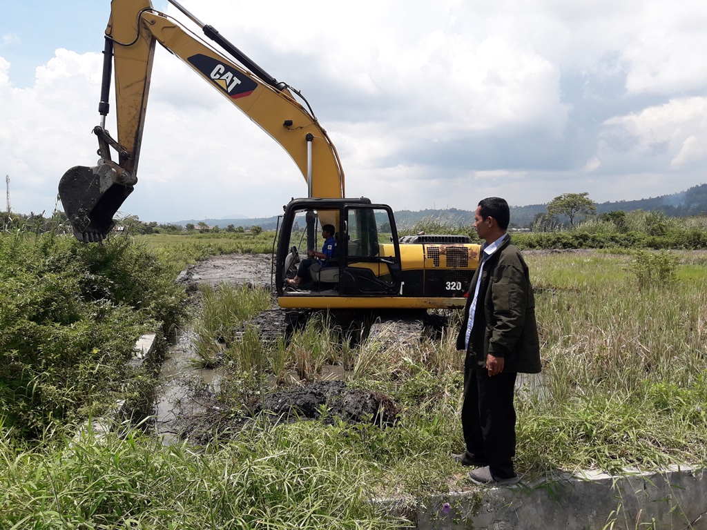 Alat berat yang sudah dua hari bekerja membelah lahan sepanjang 500 meter sejak kemarin itu, diproyeksikan akan berdampak kepada areal persawahan seluas 30 hektare.