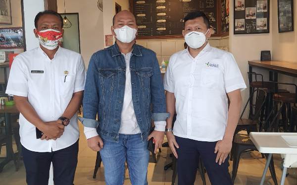 Bupati Taput Nikson Nababan didampingi Kadiskes Alexander Gultom diabadikan dengan dr. Deddy Crizal dokter penanggung jawab PT Pupuk Indonesia. Rabu (29/9/2021). PALAPA POS/ Alpon Situmorang