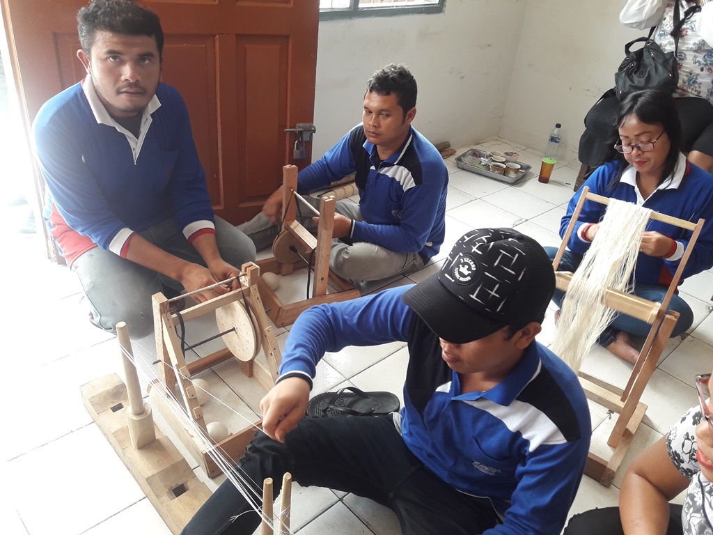 Terpidana lima tahun lebih atas tindak pidana Pemilu Leo Napitupulu juga ikut dalam pelatihan petenun yang difasilitasi Ketua Dekranasda Taput Satika Simamora. PALAPAPOS/Alpon Situmorang