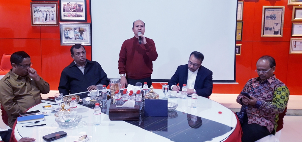 Bupati Taput Nikson Nababan, Profesor Elwin Tobing dari UCLA, tim dari USU, Sekda Indra Simaremare dalam agenda FGD bertajuk pendirian Universitas Negeri di Tapanuli Raya. PALAPAPOS/Alpon Situmorang