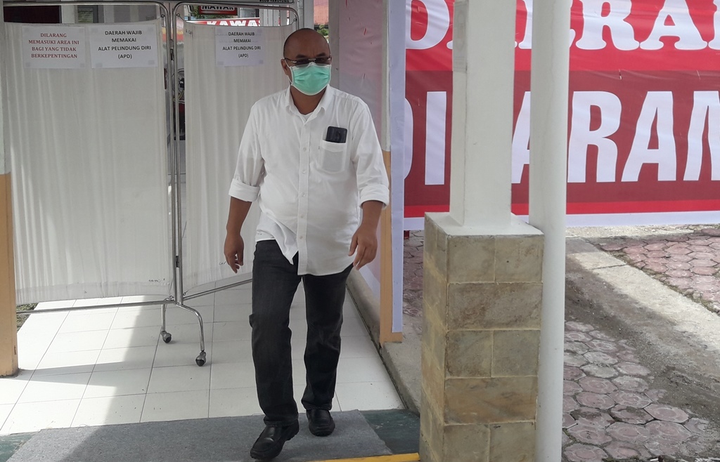 Direktur RSUD Tarutung Janri Nababan usai memantau tenaga medis dan stafnya yang kembali menjalani masa isolasi. PALAPAPOS/Alpon Situmorang