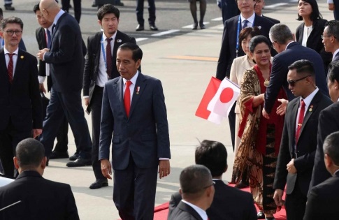 Presiden Joko Widodo bersama Ibu Negara Iriana Jokowi saat tiba Osaka, Jepang menghadiri KTT G20. PALAPA POS/Istimewa