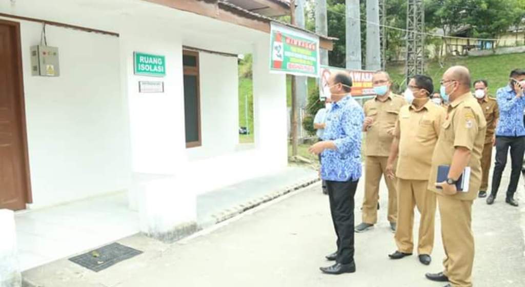 TAPANULI UTARA - Bupati Tapanuli Utara Nikson Nababan bersama Ketua DPRD Taput Poltak Pakpahan, Kapolres Taput AKBP Horas Marasi Silaen, Dandim 0210/TU Letkol Czi Roni Agus Widodo, Kajari Taput Tatang Darmi, meninjau ruang isolasi Rumah Sakit Umum Daerah Tarutung bagi orang dalam pemantauan (observasi) akibat virus Covid-19, Selasa (17/3/2020).