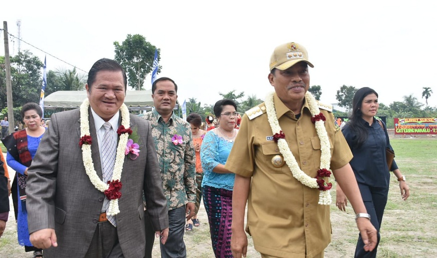 Wali Kota Umar Zunaidi Hasibuan dan Praeses Pdt Pantun Silitonga pada acara peletakan batu pertama pembangunan rumdis Praeses HKBP Distrik XIV Tebing Tinggi Deli. PALAPA POS/Ronald Pasaribu