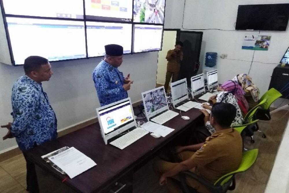 Wali Kota Tebing Tinggi Umar Zunaidi Hasibuan didampingi Kadis Kominfo Dedi P Siagian saat meninjau kesiapan Command Centre 112. PALAPAPOS/Ronald Pasaribu