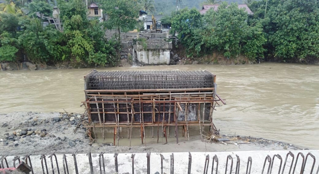 "Pekerjaan isedikit terkendala akibat debit sungai naik. Bahkan material bangunan pernah terseret arus sungai,"katanya.