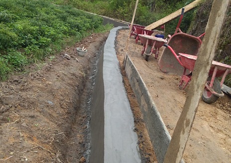 Saat ini proses pembangunan yang dilakukan yakni pembangunan Tembok Penahan Tanah (TPT) terlebih dahulu menuju persawahan Naga Dudan.