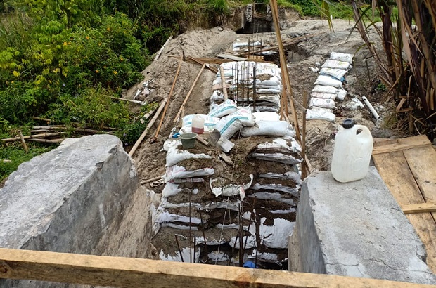 Diungkapkannya saluran irigasi yang melintasi wilayah Desanya akibat derasnya hujan dihantam sehingga ambruk.