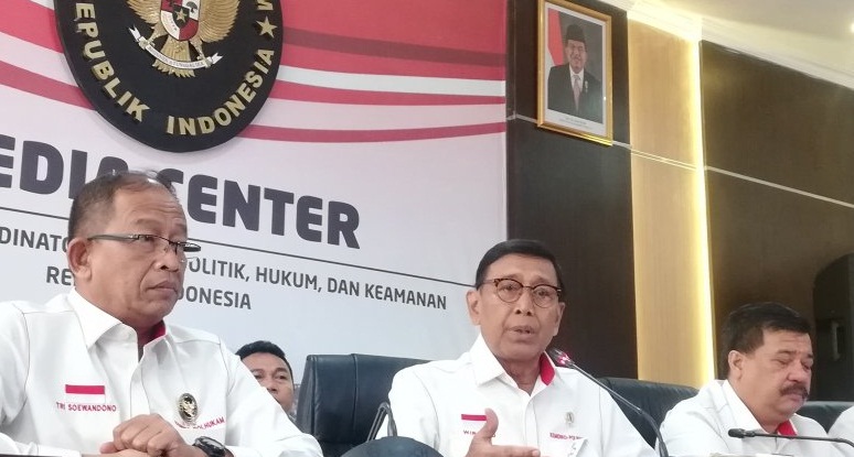 Menko Polhukam Wiranto saat menyampaikan pernyataan pada konferensi pers menyikapi pro-kontra revisi UU KPK, di Kantor Kemenko Polhukam, Jakarta, Rabu (18/9/2019). PALAPA POS/Istimewa