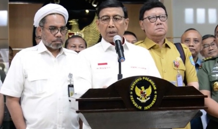 Menteri Koordinator (Menko) Politik Hukum dan HAM (Polhukan), Wiranto saat memberikan keterangan pers terkait ricuh di Papua. PALAPA POS/Istimewa